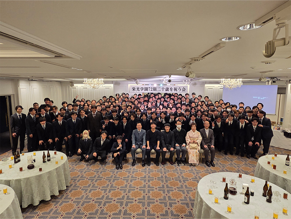 2026年1月11日、成人の日の前日に72期初めての同窓会が執り行われた。72期の多くは20歳を迎え、横浜にあるHOTEL PLUMMにておよそ2年ぶりの再会となった。156名の同窓生に加え、高校3年次の担任団である高田先生、北川先生、片居木先生、福本先生、そして特にお世話になった先生として円福寺先生、大竹先生にご出席いただいた。