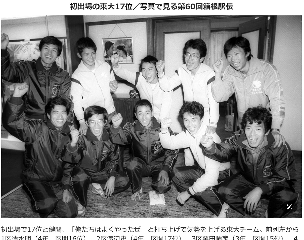 これを機に、箱根駅伝への関心が一気に高まり、87年にはTV放送開始、その後は新規の大学の参入も始まり、現在のブームにつながっています。ただ、皮肉なことに、逆に東大出場のハードルは高まる一方で、その後の本選参加はいまだありません。
