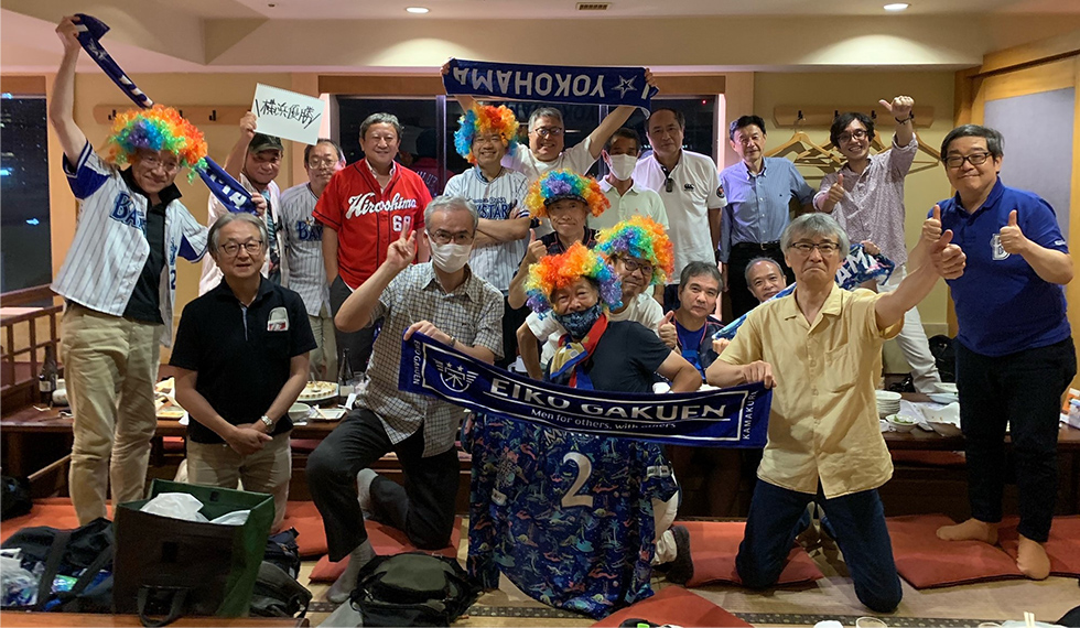 過去には、我々27期だけでなく飯野先生や家庭科の大竹先生にもご参加いただいたことがあるこのイベントは、毎年20名前後の仲間が集まり、これまで延べで150名以上が参加しています。両先生にご参加いただいた2017年の広島カープ戦は特に印象的で、9回裏に3点差のビハインドを、筒香、ロペス、宮崎の3連続ホームランで逆転サヨナラ勝ちをおさめるという、プロ野球史上初のドラマチックな展開となり、今でも「我々が最後まで諦めずに応援したからだ」と、仲間内で語り草となっています。