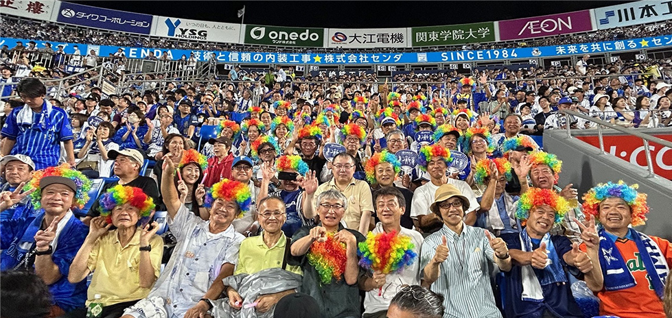 団体席でペンライトやお揃いのレインボウアフロヘアで目立たせたことが奏功して、場内の大型ビジョンやTVKの実況中継に映りこむことにも成功しました。