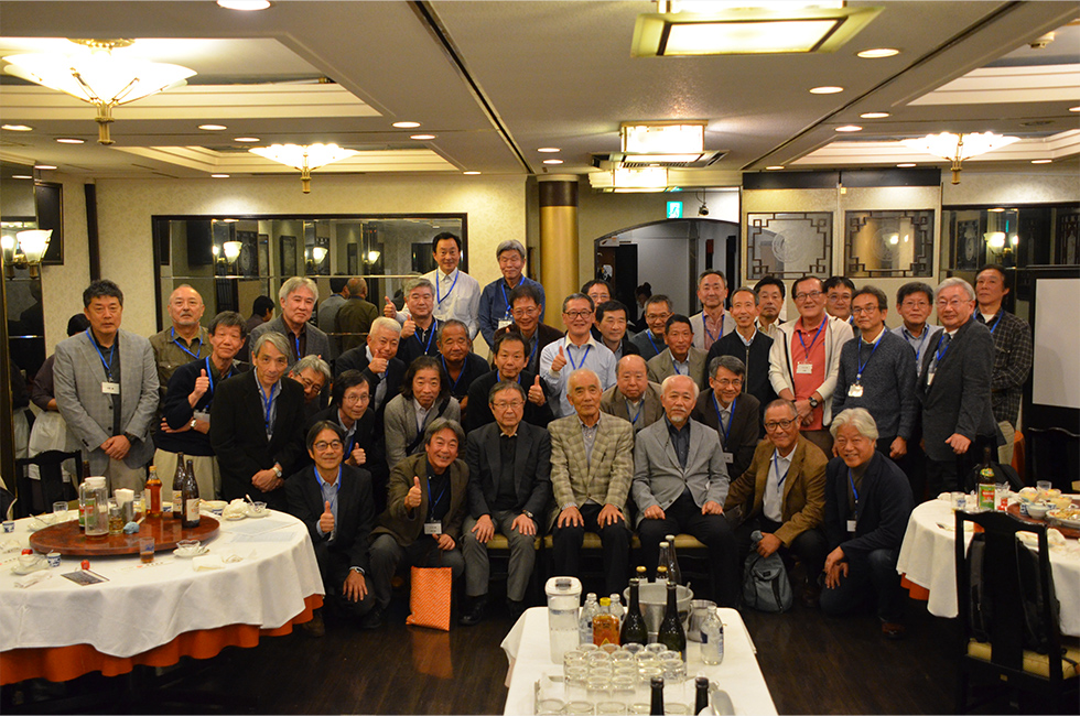 幕開けは迫先生のご挨拶と乾杯の音頭。「歳をとると話が長くなりがちでねえ」と自らを戒めながら、背筋をまっすぐ伸ばしたいつもの姿勢で、持ち時間をたっぷり使って近況をお話くださいました。続いて栄光で化学を教える同期の高田暁先生から「栄光に女性の先生は何人いるでしょう?」といったクイズ形式で栄光の今を教えてもらい、同窓会事務局副会長を務める同期の高橋英治さんから未来EIKO募金や会費についての説明がありました。